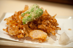 | 生桜海老と新玉葱かき揚げ | 天然鯛 昆布〆 |
